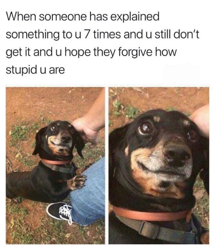 Dog - When someone has explained something to u 7 times and u still don't get it and u hope they forgive how stupid u are