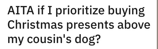Hmm, right off the bat our first thought is that the word cousin is important here. It isn't the original poster's dog, it's their cousin's dog. But we'll have to keep reading to find out whether the dog is a shared responsibility between them, or the poster is leaving out important reasons why the dog might be their responsibility.