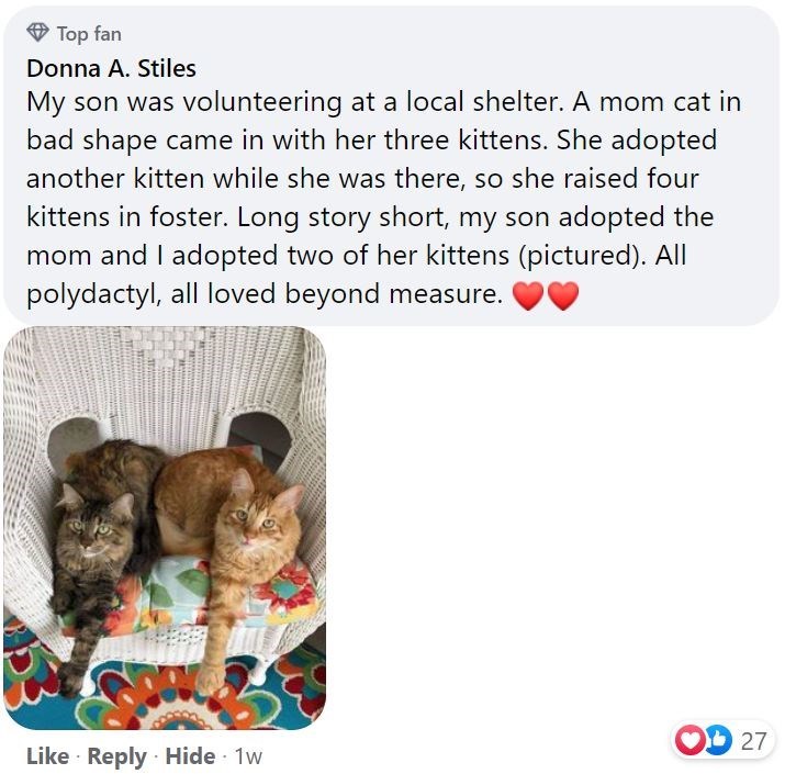 This is another reason why you guys are amazing. No time to pause, kittens in need, must rescue and will rescue. Not many people would have been so quick to adopt these three kittens together let alone do it this quickly. You're awesome, Julie, and we would love to see more pics of these fluffballs hanging out together.