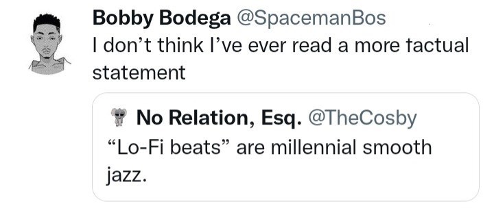 Comparing the innocuous studying background music of Lo-Fi beats to smooth jazz, people almost uniformly agreed that the genre had had a weirdly important impact on many Millennials and Gen Z. We might be killing industries left, right, and center, but we're definitely keeping those 10 hour YouTube streams alive.