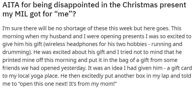 Woman Bursts Into Tears After Receiving Irrelevant Christmas Gift From Her MIL Based On Her Husband's Recommendation