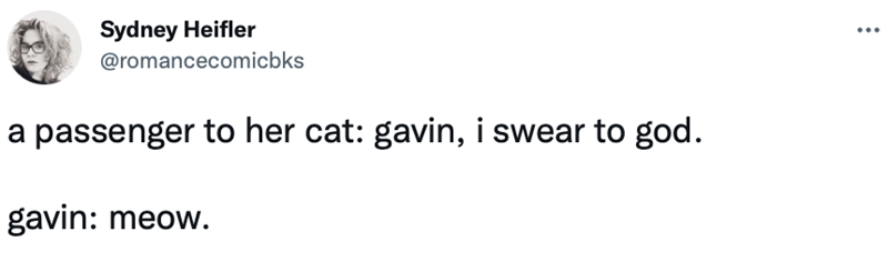Aww, Gavin clearly can tell that he's a troublemaker. Chatty tabbies can be that way sometimes. We wonder how long this flight is. Will Gavin get a chance soon to stretch his legs and take in his surroundings? After all, moving can honestly be hard for a cat.