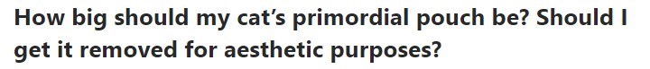 Font - How big should my cat's primordial pouch be? Should I get it removed for aesthetic purposes?