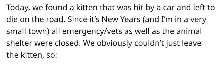 Wow, how awful! The roads can be slippery this time of year so be sure to watch out for stray cats while driving, and if you live in area with a lot of stray cats, be sure to check underneath your car before starting it, you may have the opportunity to save a life! We're so happy these hoomans found the stray cats and refused to abandon them in such an awful situation.
