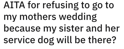 Hmm, we wonder where this is going. There has to be a lot of drama in a family for a child to not go to their parent's wedding, but the fact that this woman's sister and her service dog are there too raises some questions about the back story. Let's keep reading and find out exactly what happened…