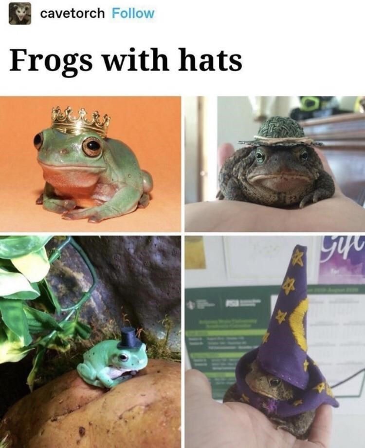 What could be more charming, more refined, more dashing than a frog with a hat? Well, a lot of things. But these guys do look pretty silly.