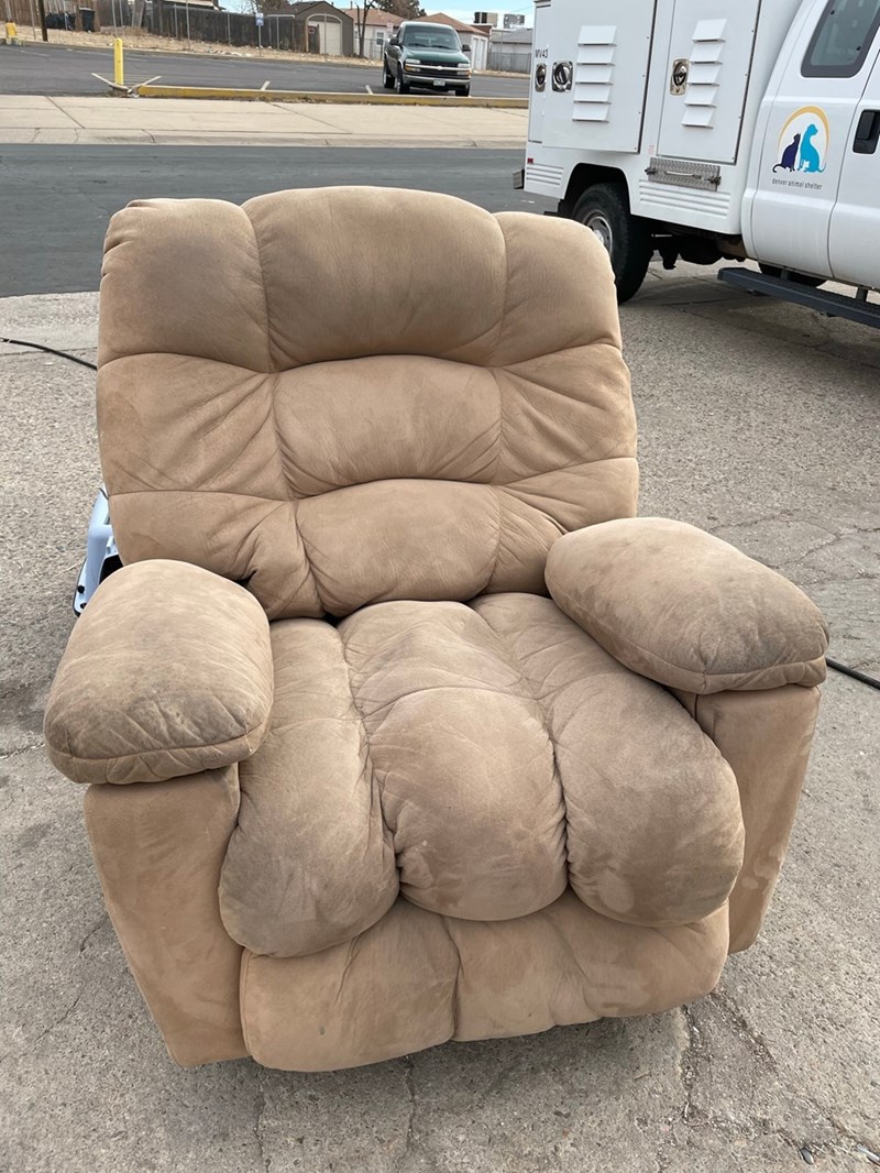 Unbeknownst to them, their pet cat had crept into a space underneath the armchair before the chair was donated!