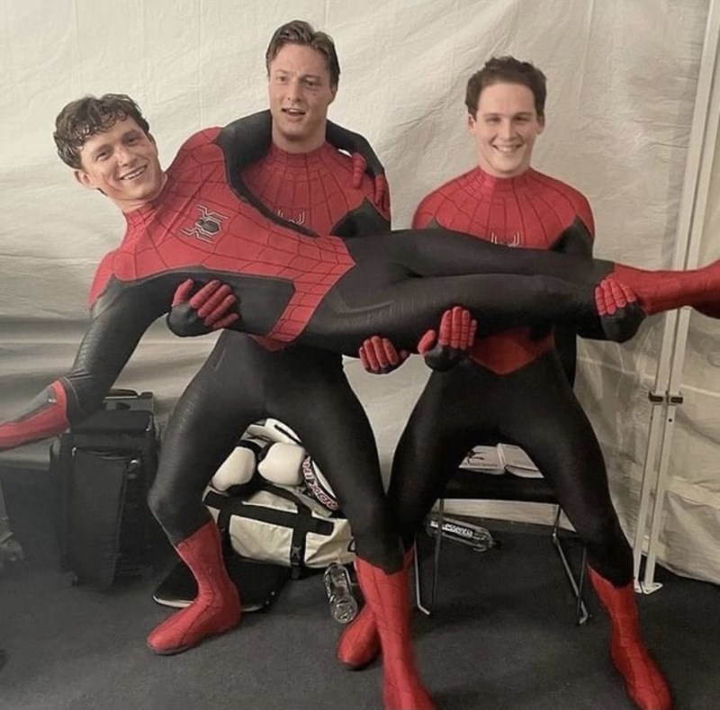 Tom Holland (Spider-Man) with his stun doubles Greg Townley and Luke Scott