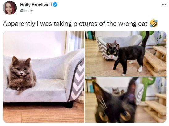 Aww, looks like someone's jealous! We can' help but laugh at this small black cat's futile attempts to show the other cat that he's the boss around here and get his human's fullest attention, even if it means disrupting what was clearly a super cute photoshoot! Ah well, it is pretty hilarious.