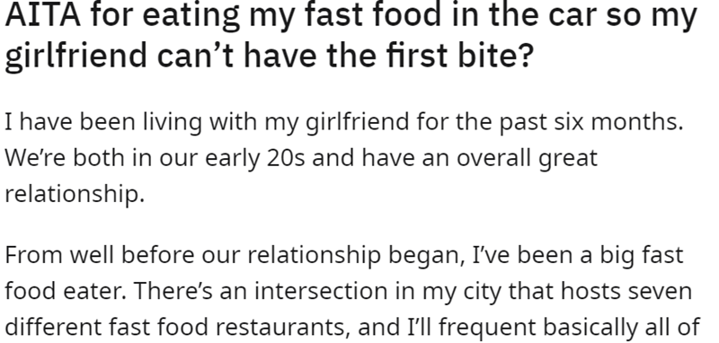 We vibe with OP's fast-food diet.