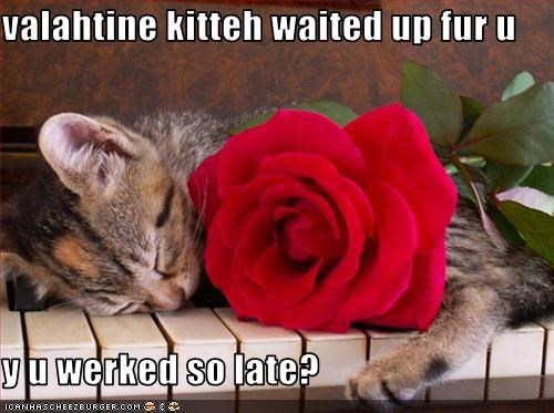 valahtine kitteh waited up fur u y u werked so late?