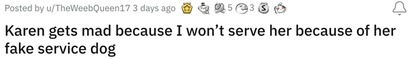 RIP Bella. No wonder OP is so knowledgeable and passionate about service dogs. One clearly had a significant impact on her mother's life. A sharp eye for ADA intruding Karen's is one of OP's strong suits.