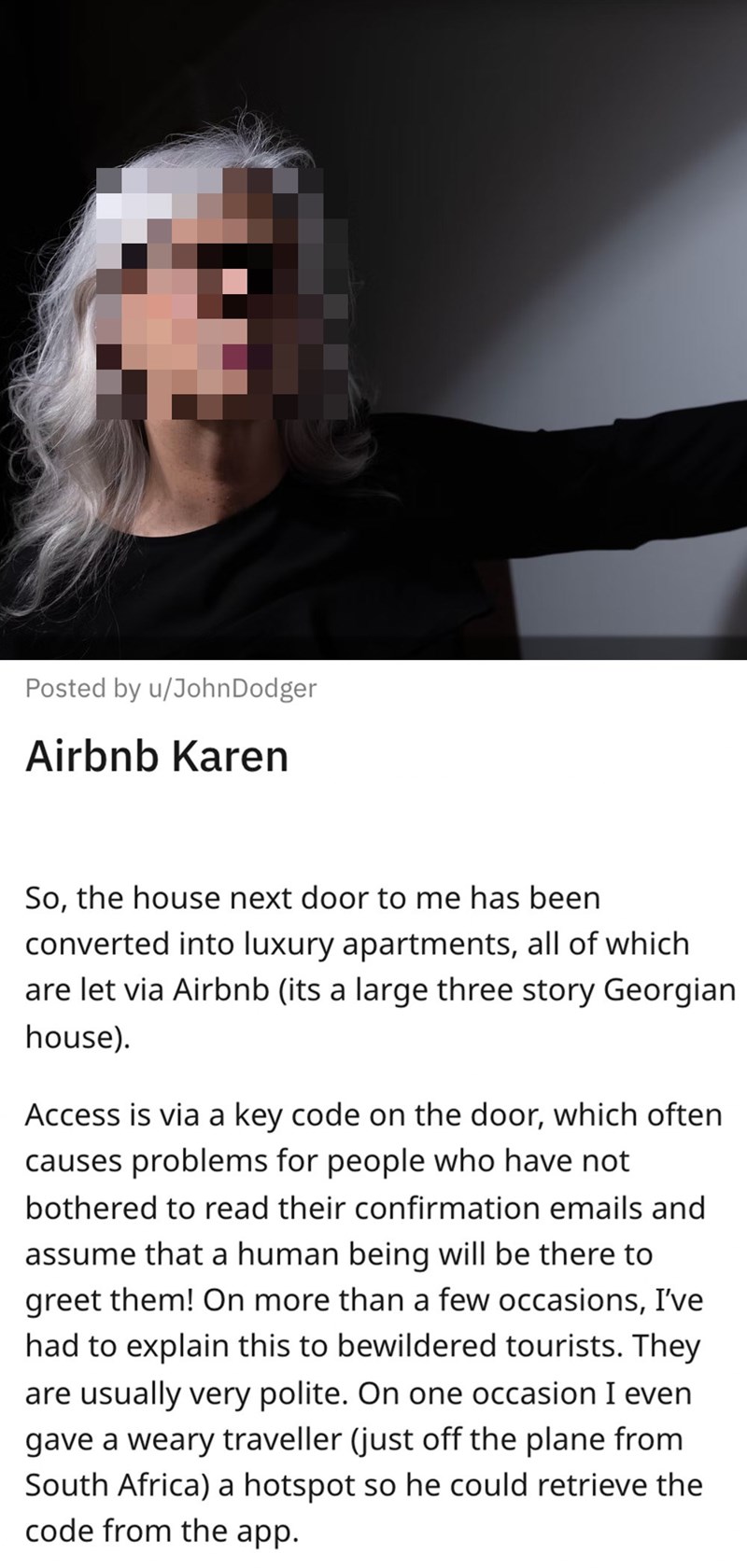Some say that this Karen is still waiting to get into her Airbnb to this day.