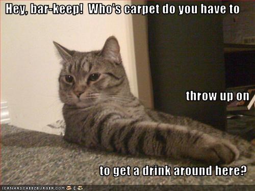 Hey, bar-keep! Who's carpet do you have to throw up on to get a drink around here?