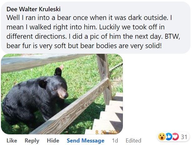 We don't know who must have been more surprised in this situation honestly. Obviously, we would have peed ourselves if this had happened to us, but we can only imagine how shook the bear was too. To have a puny human run into him, expecting no consequences? We think that would be hella shocking.