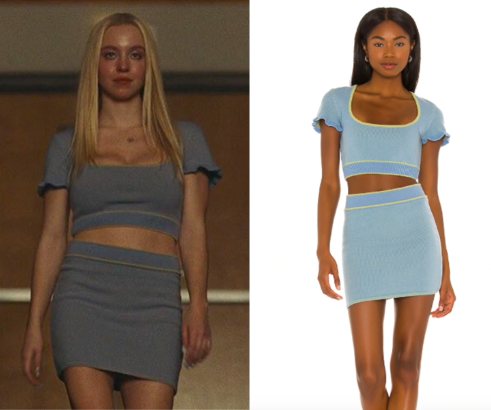 This designer baby blue knit set is now iconic because of Cassie's literal scene-stealing moment. The Danielle Guizio set sells for $405, Expensive, but this set sure got its limelight.