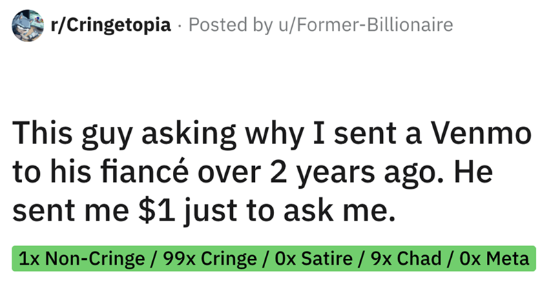 Insecure Chad Cringe-Lord Confronts Guy on Venmo Over Fiancée's Two-Year Old Transaction