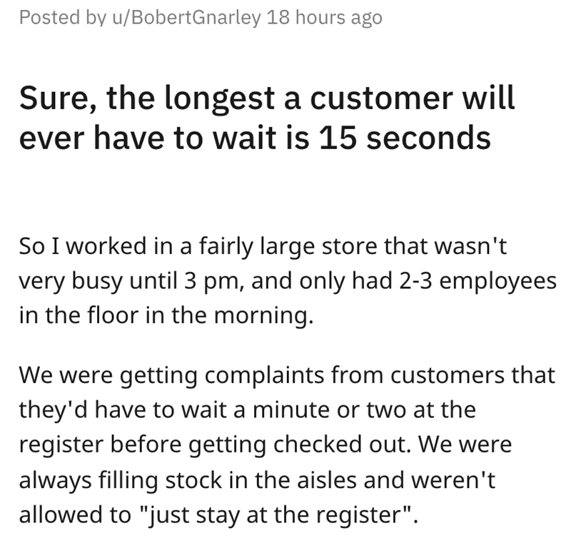 Some types of retail require constant handholding, and so, as long as there is a customer in the store, you will need to be directly at their side. Other retail types are a little different, and customers are happier to browse on their own; this seems to be the type of location described in the story, which was shared by u/BobertGnarley to the r/MaliciousCompliance subreddit.