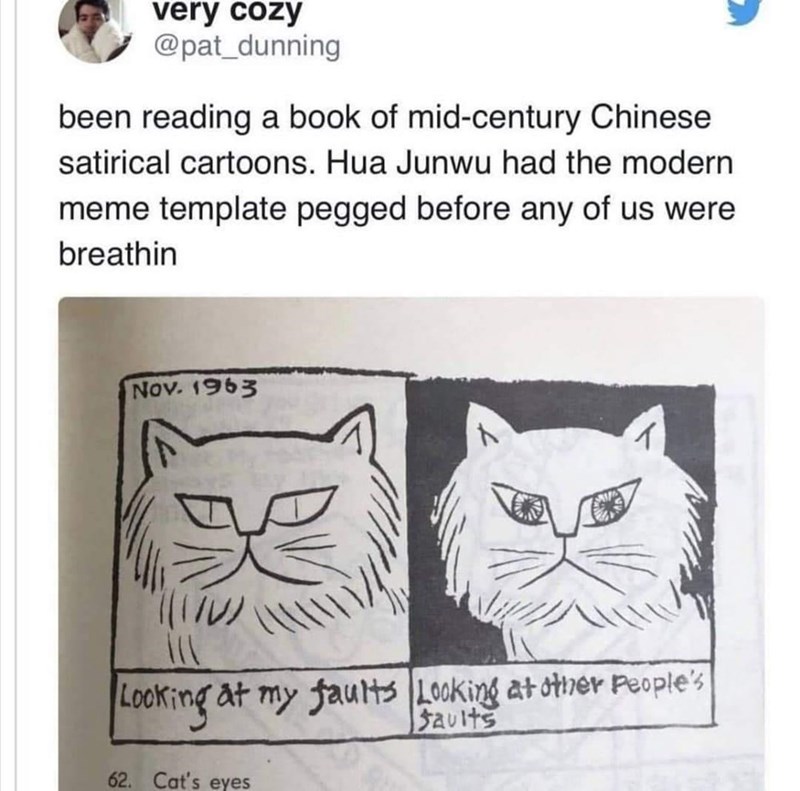 We would like to also start reading books of mid-century Chinese satirical cartoons! Look at this grompy lil guy.