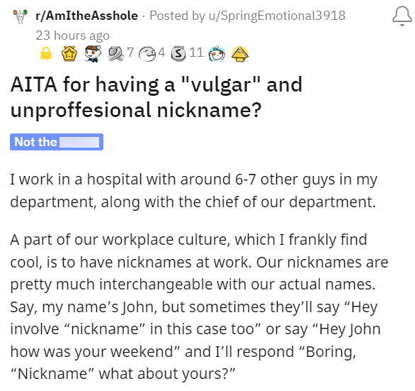 New Hire Explodes On Coworker, Personally Finds Their Nickname "Vulgar And Scary"