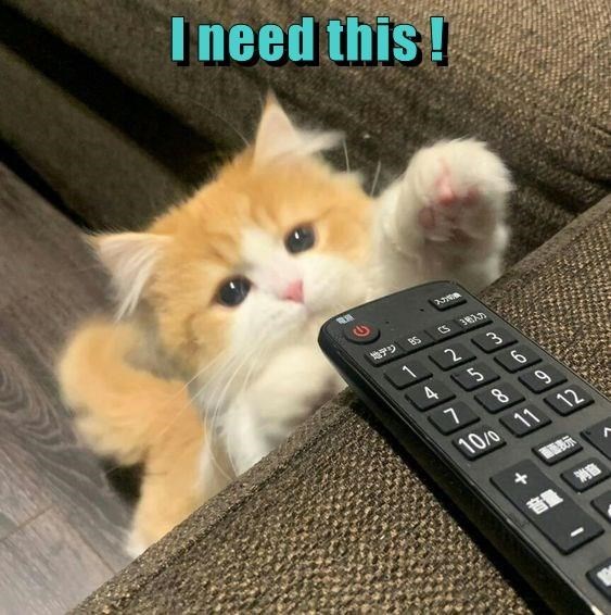 He needs it and he needs it urgently! Don't you humans see how urgent it is that this lil cat retrieves his remote control?