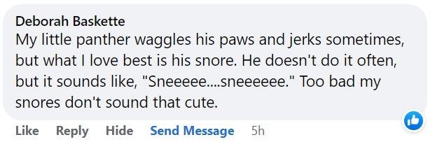 One thing that one of our cats does in her sleep is make funny chirping noises. It happens rarely, but when it does, it's normally accompanied by her paws twitching as if she's running or hunting. We are convinced that when that happens, she's dreaming about either birds or bugs, because those are the only creatures at which she makes those noises during the day, and personally, we think that's one of the most adorable things in the world.