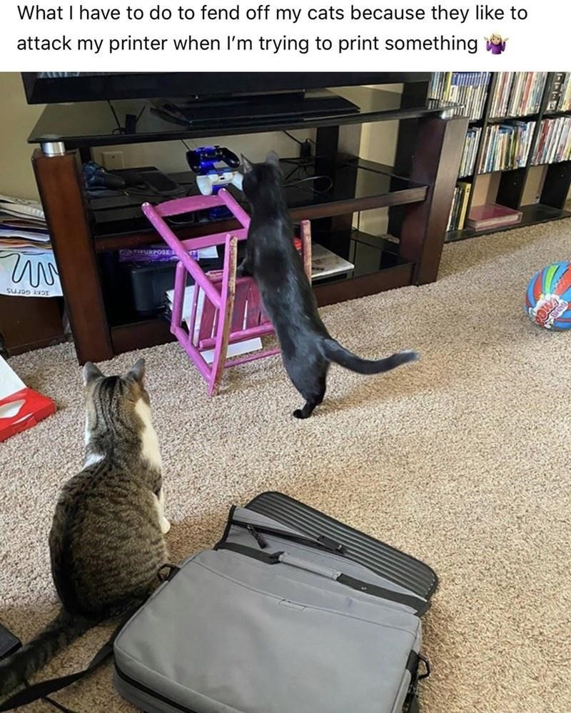 Cats really have issues with some of the silliest things sometimes. One of our friends has a cat who is absolutely petrified of her Crocs. There is no other shoe that spooks her in the same way. She'll be sitting there, glaring at it with her tail puffing up in fear, then run up to it, ninja-attack it with a couple quick smacks and run away hissing. We don't know why, we just know that it's heckin' hilarious.