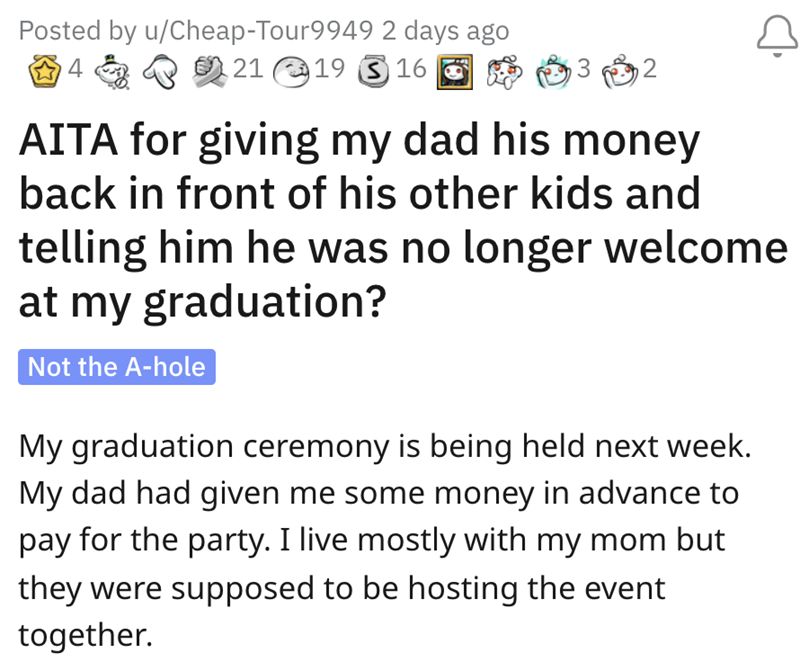 Bad Dad Demands Son's Graduation Money Back to Give to His Step-Child
