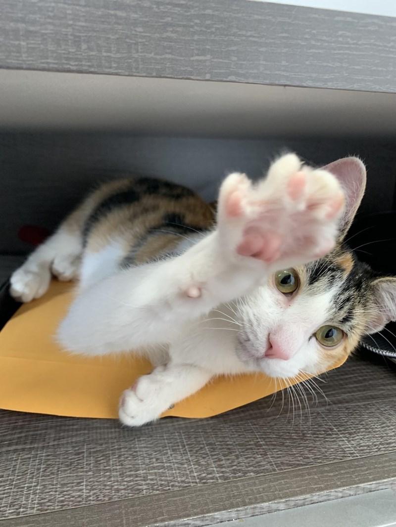 "Toes!!! Found this poor stray outside in the rain last night - she made herself right at home ????"