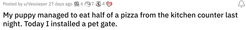 Hongry Dog Sneaks Pizza Off Kitchen Counter, Crushed When His Humans Instal Pet Gate To Prevent Further Thievery