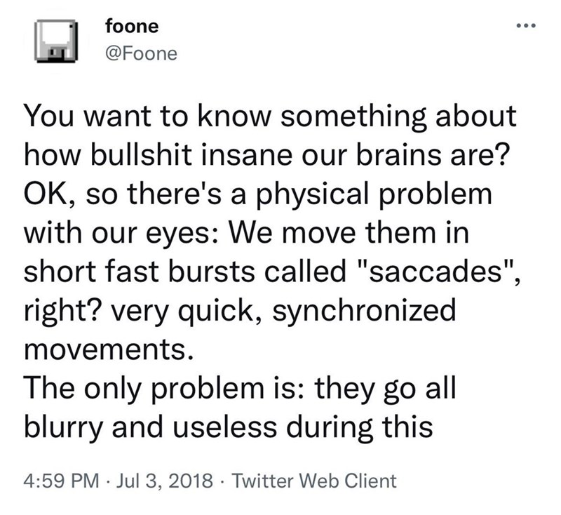 Twitter Thread on Saccades Explains That Human Vision Is Made Out of Lies