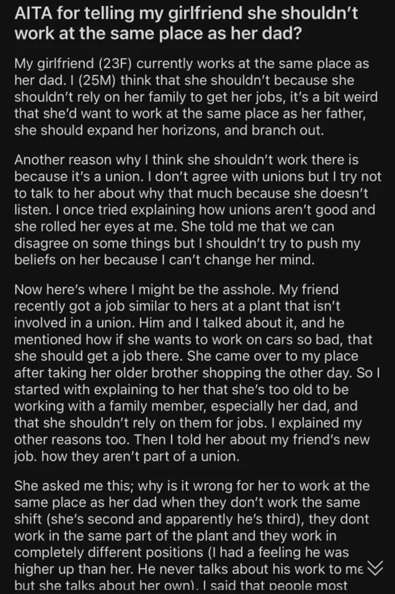 Boyfriend Claims Nepotism, Wants Girlfriend to Quit Job So He Can Control Her, Wonders if He's Wrong
