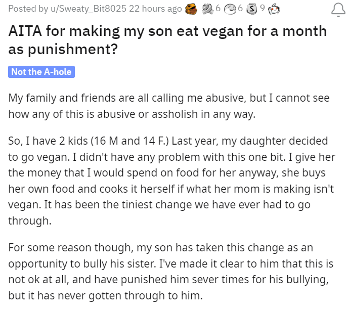Son Punished by Going Vegan for a Month, Family Overreacts