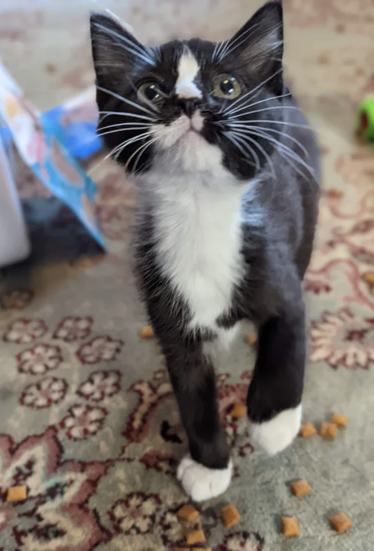 "Biscuit (and non-tuxie company) turned 8 weeks old yesterday and he's looking dashing"