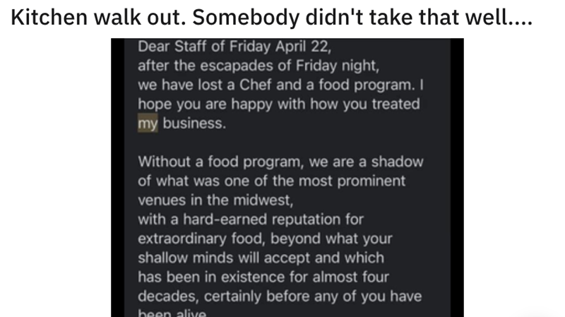 Owner Sends Insane Email After Kitchen Staff Walk Out