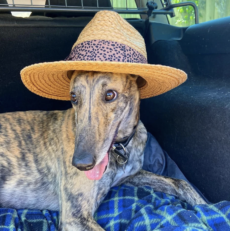 "“2nd gotcha day. He’s celebrating independence from track life. He said the parade route was too much and he preferred to lay on the floor. Damn I love this 100 lb lug.”"