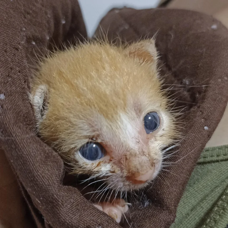 "Found him in the streets under the heatwave, no mom or siblings in sight. Belly and paws peeled off by the scorching heat, slowly healing. Meet Houdini."