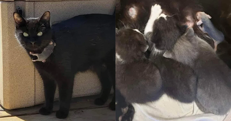 "Our senior mouser cat, Sam, brings home a black kitten every few years. This is the second one he's brought home. It is very skitish, but given time, this will be void #7"