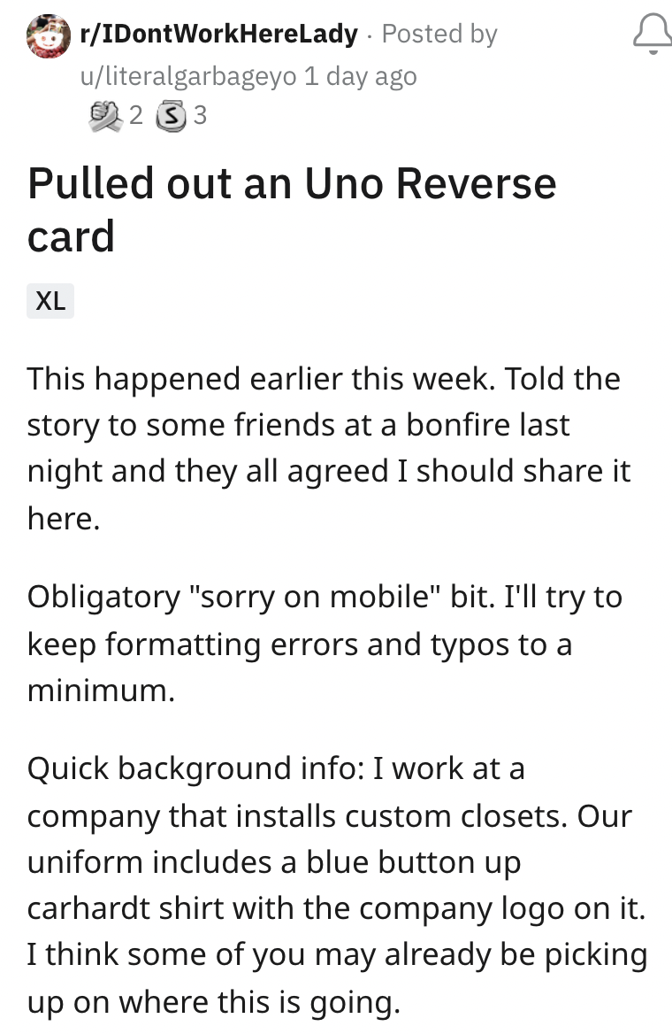 Reddit user u/literalgarbageyo posted this thread to Reddit's r/IDontWorkHereLady, a medium-sized subreddit that often features stories, such as this, that have been shared by Reddit users about their experiences being mistaken for workers. Usually, the individuals making the error in judgment also have other errors in rationale and refuse to accept that they're wrong about the accused's identity.