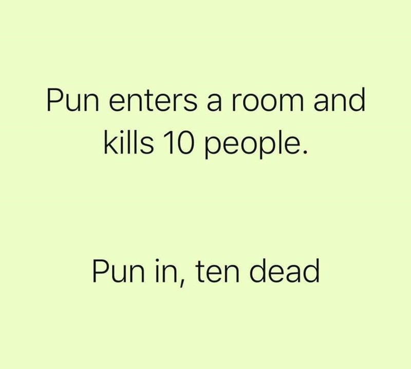 Pun enters a room and kills 10 people.