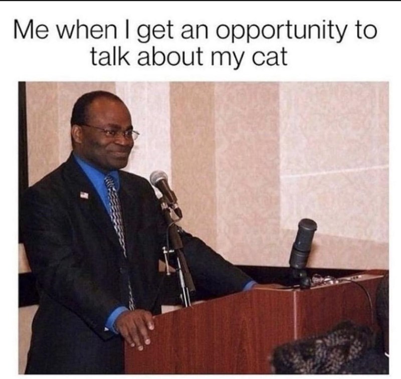 Literally though. Not only a speech but also showing off every awwdorable picture of our cat that we have on our phone. We've gotten to the point that we actually warn people. "Don't get me started about my cats," we say. "Don't give me the opportunity, because I will not shut up for at least 15 minutes, I swear."