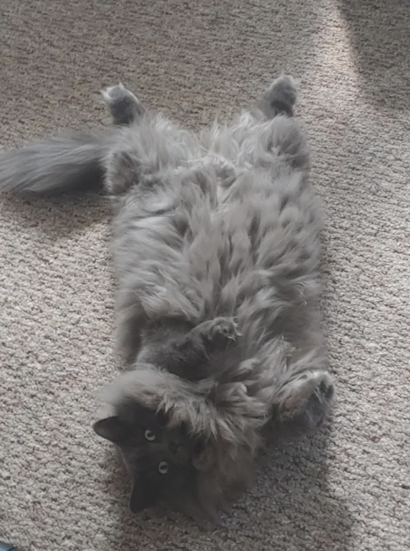 As you'll notice in many of these photos, the cats are laying on their backs with their bellies pointing up. As you know, this means that the cat trusts you. The Nebelung breed is friendly, affectionate, and loyal. But only to the people they know.