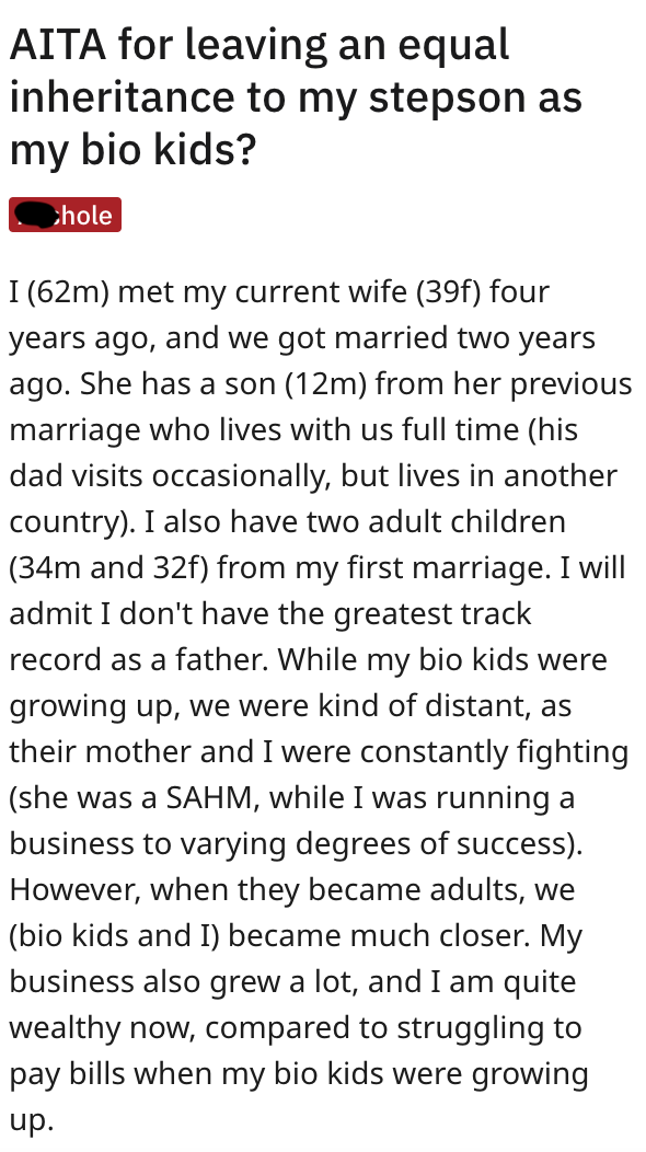 Dad Gives His Stepson an Equal Share of His Inheritance, Faces the Wrath of His Biological Children
