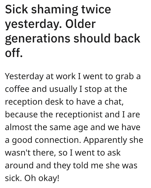 'We are not going to suffer [...] for our jobs like you boomers': Sick receptionist shamed by HR and guilted into coming to work