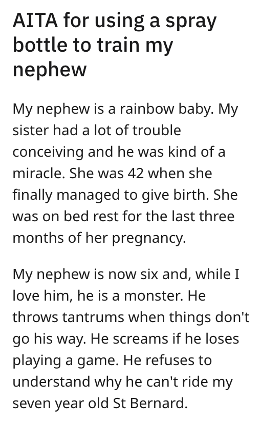 'I grabbed the spray bottle I use to keep the cat off the counter': Woman sprays water at nightmare nephew as punishment