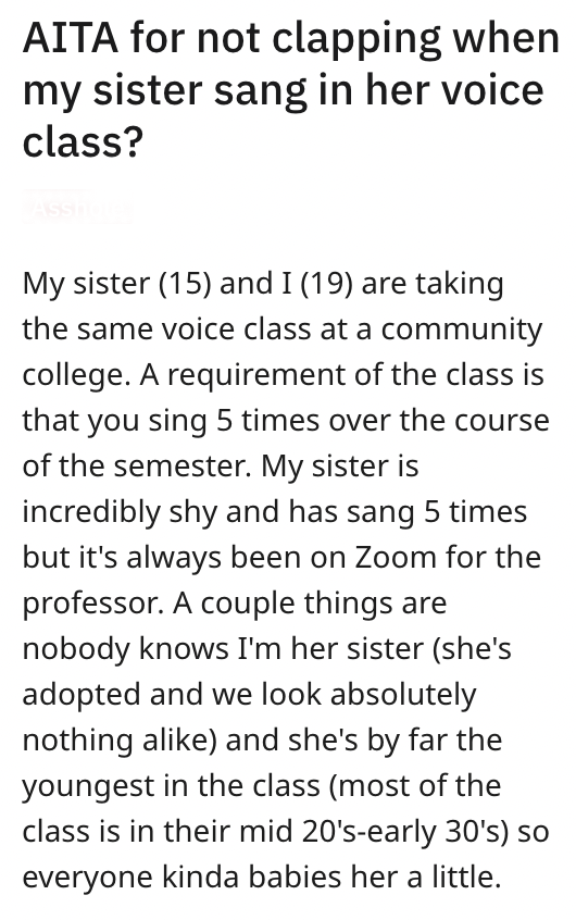 'Everyone clapped for her, except for me': Older sister humiliates younger sibling in front of entire singing class