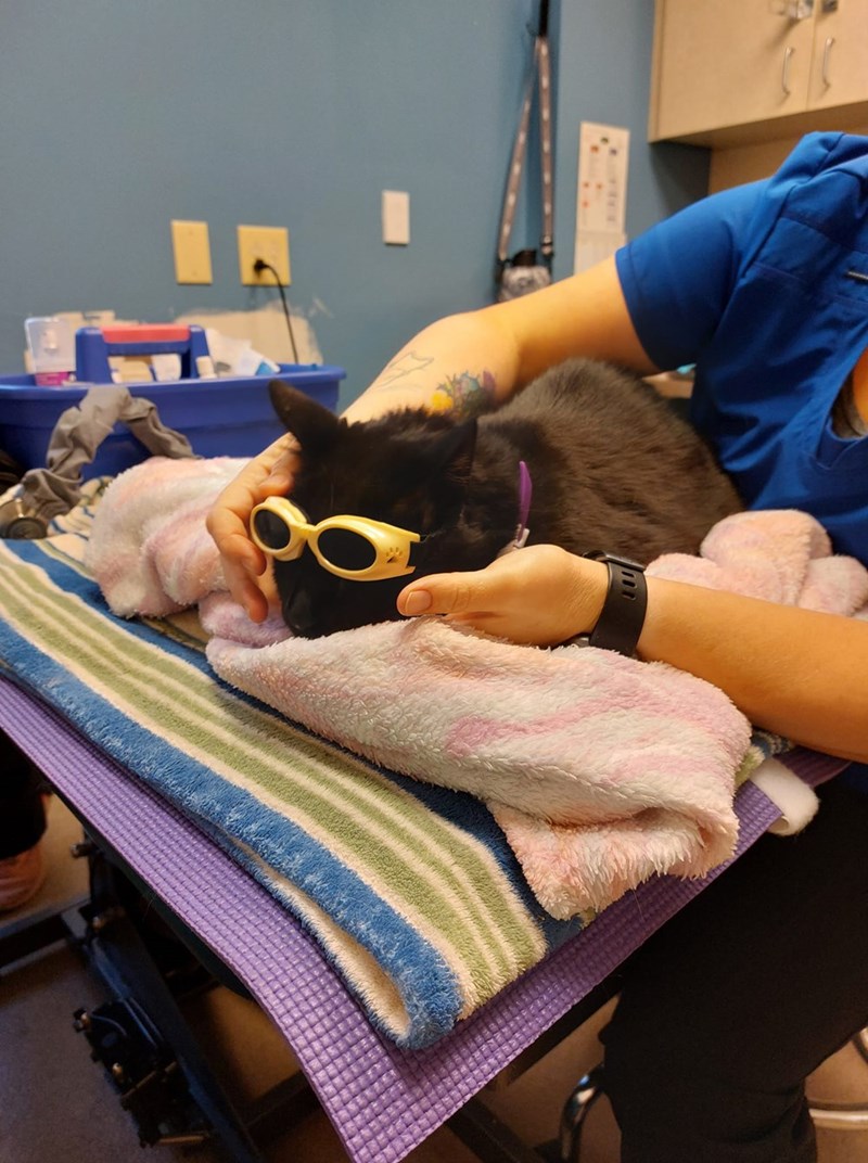 "I work for a vet. Last year, we had our youngest cat spayed. She is a calico and tiny. I got a text from the doctor telling me to come get her ASAP after surgery because she tried to eat the doctor while she was waking up. The doctor had to throw her in the (fully-enclosed) oxygen chamber so she (the doctor) wouldn't get mauled. Eowyn weighed a whopping 4.5lbs at the time."