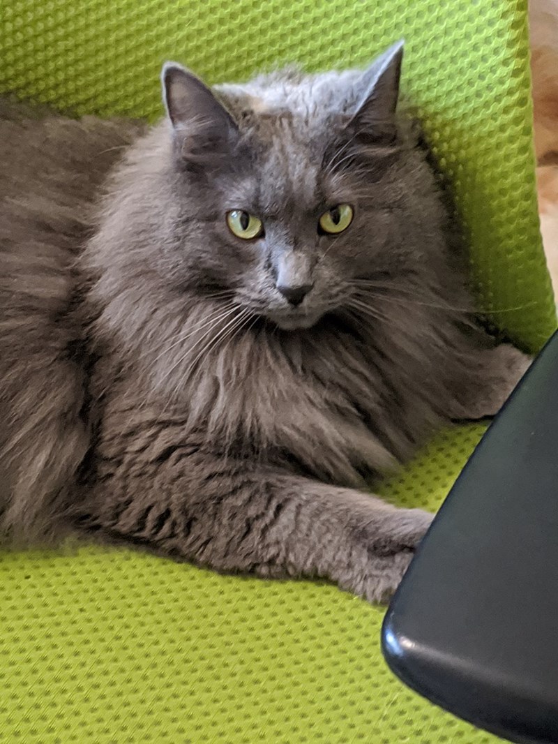 "My uncle passed unexpectedly 2 weeks ago. Little Miss Toe Beans usually perches on the top of my chair, but she's hardly left my lap for the past 2 weeks. She can always tell when somethings wrong and makes herself extra cuddly and cute for however long I need."