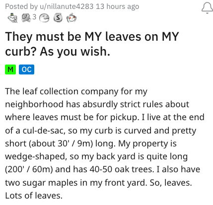 'I spoke with my neighbors and acquired the rights to their leaves': Guy leaves gargantuan mountain of leaves after leaf collection company leafs through their rulebook then leaves his leaves and leaves