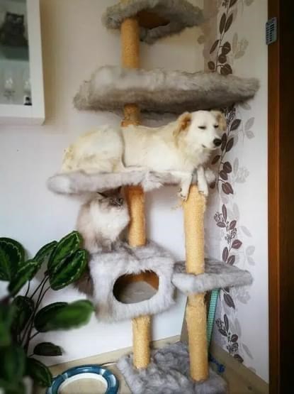 It looks like the cat taught him well. Look at that posture! And the balance?! 10000/10, couldn't have done it better ourselves. Can we also talk about how adorable these two are? Totally bonded and totally besties!